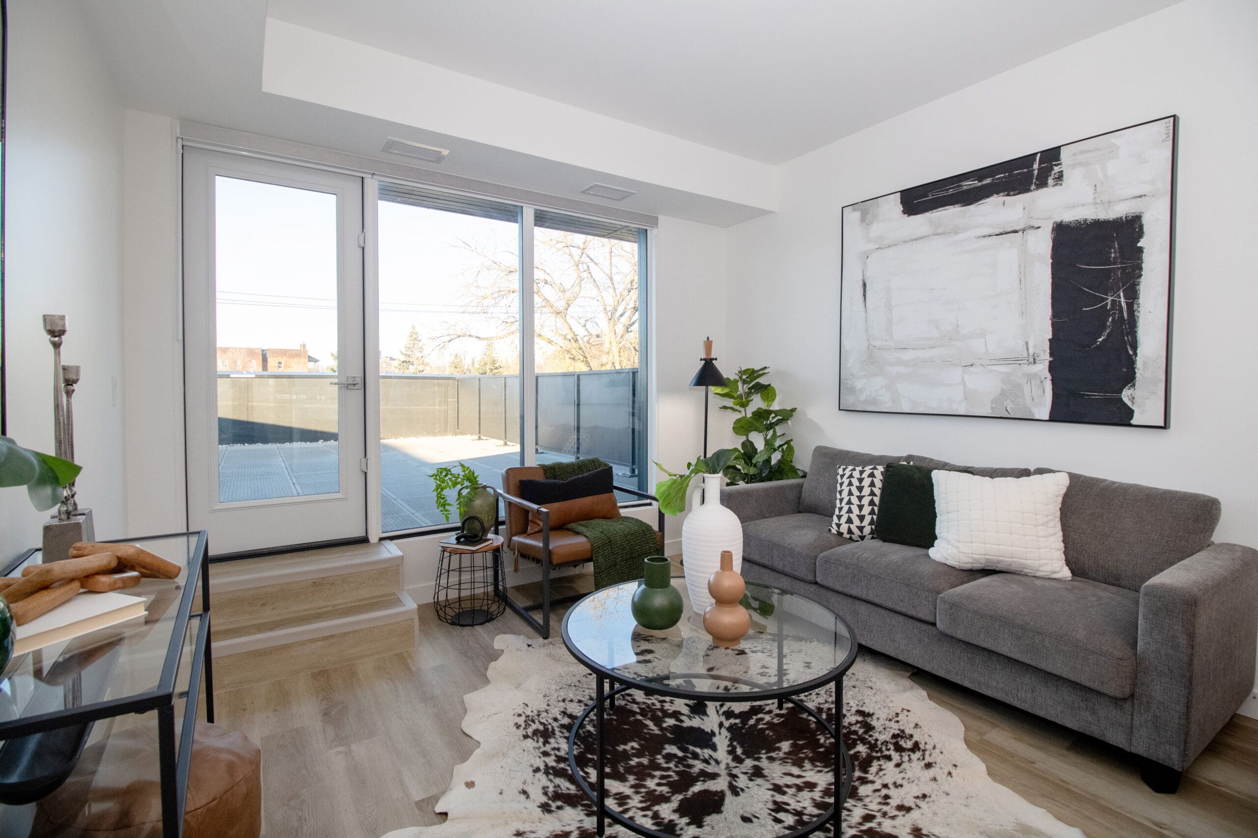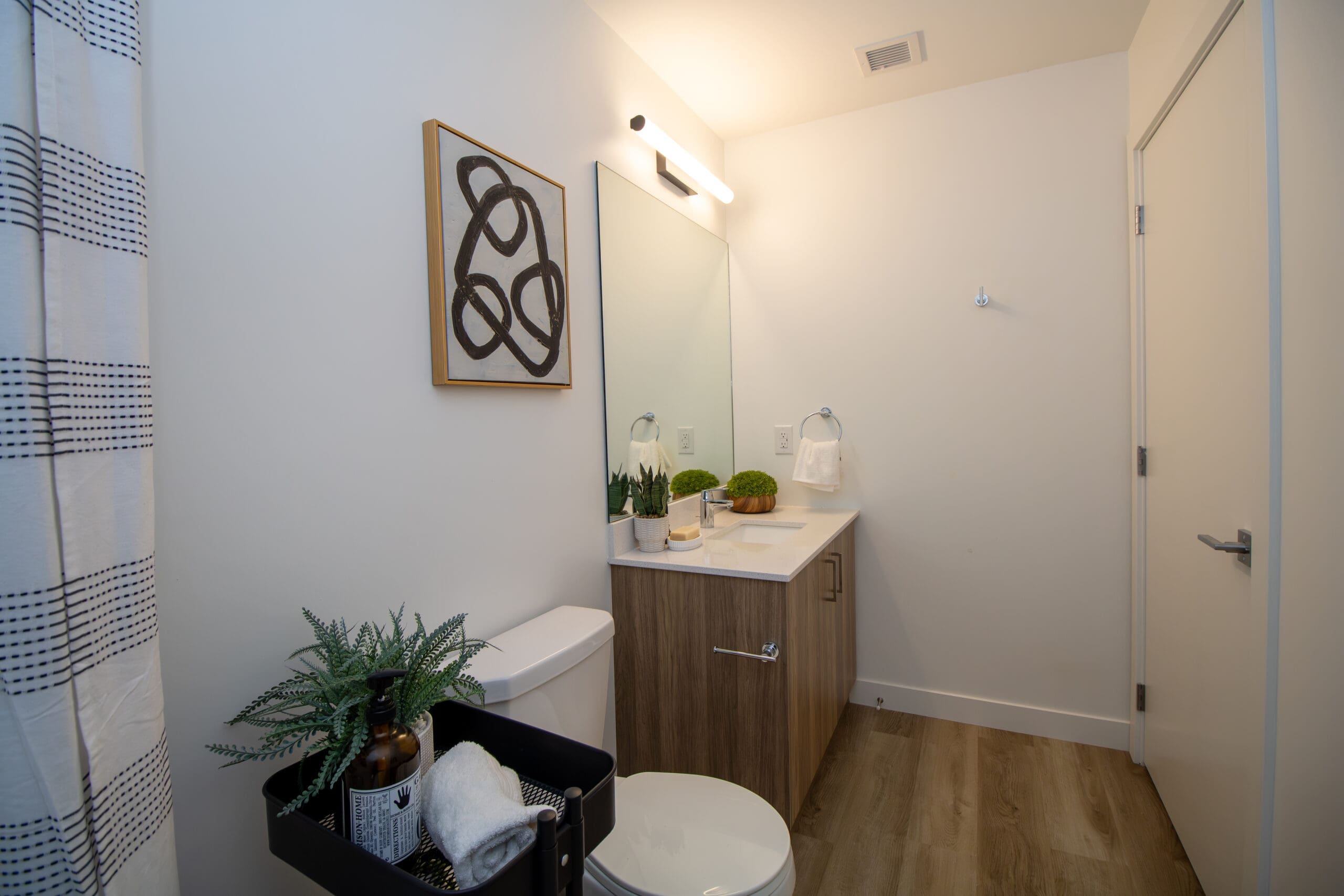 Air conditioning, Balcony, In-suite laundry, Large Windows, New construction, Open Concept Kitchen, Quartz countertops, Stainless steel appliance package, Vinyl plank flooring, Walk-in closet, Window coverings