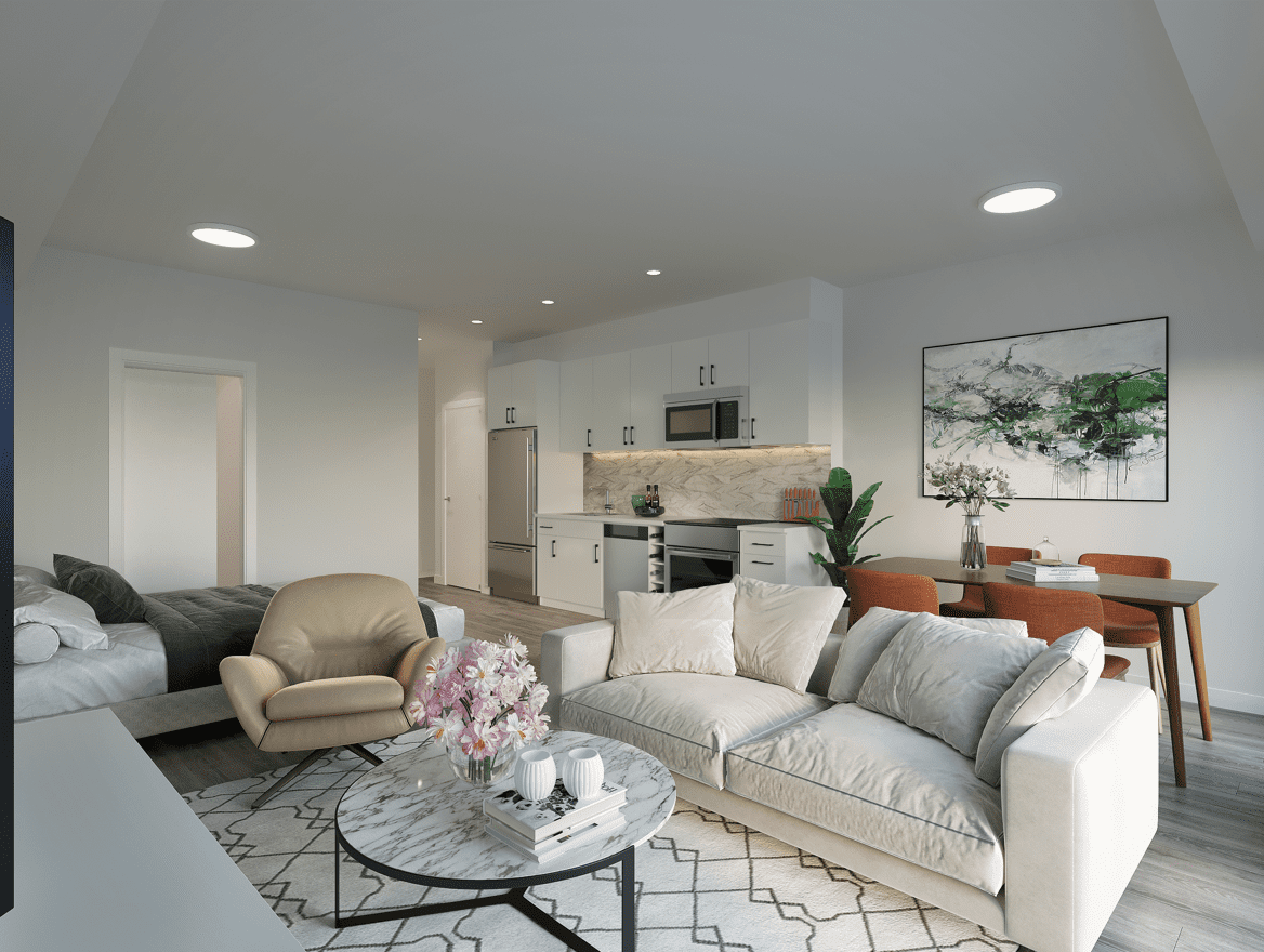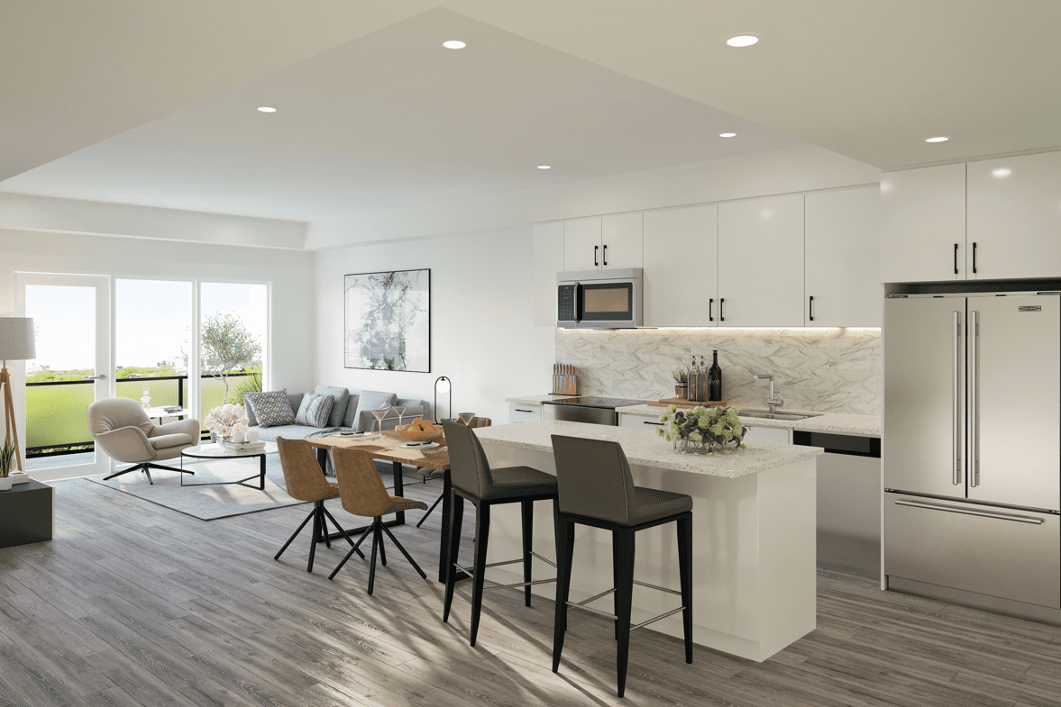 Air conditioning, Dishwasher, Eat in kitchen, En-suite bathroom, In-suite laundry, Large Windows, New construction, Over the Range Microwave, Quartz countertops, Stainless steel appliance package, Vinyl plank flooring, Walk-in closet